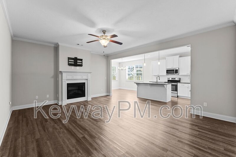 Welcome to Whispering Pines! This beautifully maintained 3-bedroom, 2-bath home offers an inviting open-concept layout designed for comfortable everyday living. The spacious great room features a decorative fireplace, creating a warm and welcoming atmosphere. The owner’s suite is privately located at the rear of the home, while secondary bedrooms are positioned toward the front for added separation. The kitchen is the heart of the home, showcasing a large island, stainless steel appliances, and plenty of space for entertaining. Step outside to enjoy a covered back porch overlooking a nicely sized backyard.
